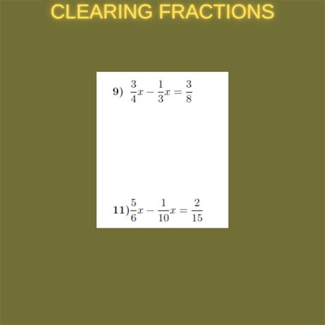 Clearing Fractions Worksheets. This partner activity allows students to practice solving equations by clearing fractions and decimals. Worksheets are equations containing fractions, solving equations containing fractions.