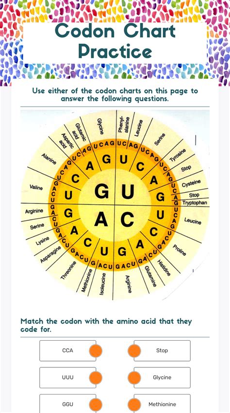 A codon worksheet is a. Then use the codonchart (below) to. A codon worksheet is a.