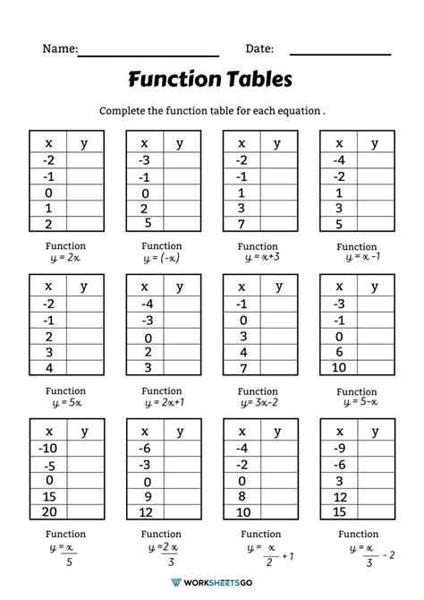 Complete The Function Table For Each Equation Worksheet.
