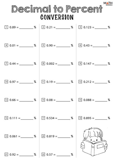 Percent To Decimal Conversion Math Worksheets For Kids.