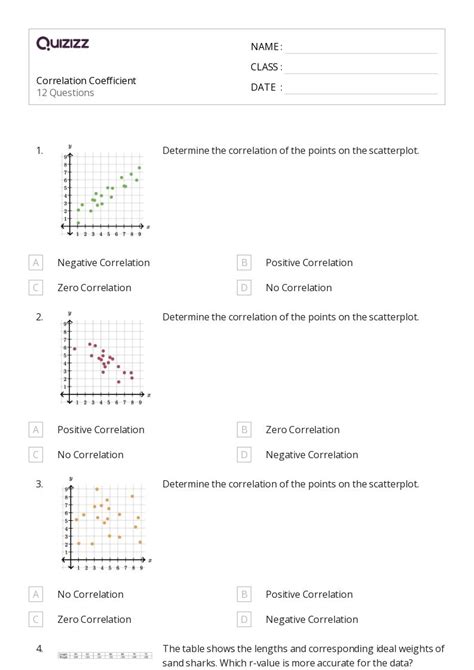 In this worksheet, we will practice calculating and using pearson’s correlation coefficient, 𝑟, to describe the strength and. A group of children took a spelling test and a fitness test. Web this quiz and worksheet will allow you to test your skills in the following areas: