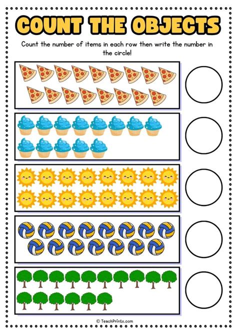 Web 30 slides to count objects in a picture to use as a number sense kindergarten activity. Students count up to 10 objects and then write the numbers in these counting worksheets. Count the objects in a.