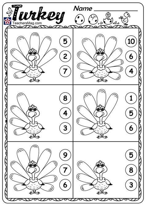 Turkey Counting Worksheets2. from teachersmag.com